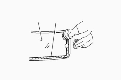 - 우레탄 접착제가 경화되기 전에 도어를 닫을 때 압력이 형성되는 것을 방지할 수 있도록 도어 윈도우를 부분적으로 아래쪽으로 내린다.